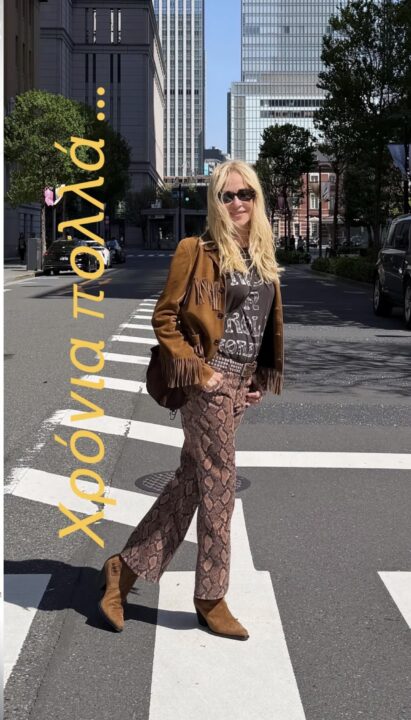 Είναι ένας συνδυασμός που “φωνάζει” Νέα Υόρκη: απελευθερωμένος, fashion-forward και απόλυτα εναρμονισμένος με το στυλ που έχει καλλιεργήσει η κόρη της, Σοφία, ως καταξιωμένη στυλίστρια.