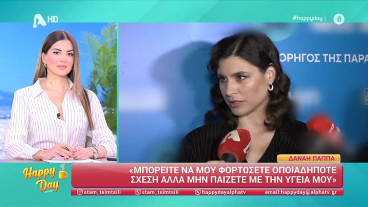Στη βραδιά φίλων για την παράσταση «Πρόσεχε ποιον σκοτώνεις» στο Θέατρο Πειραιώς 131, η κάμερα του «Happy Day» συνάντησε τη Δανάη Παππά, η οποία μίλησε ανοιχτά για τα σχόλια και τις φήμες που κατά καιρούς κυκλοφορούν για εκείνη.