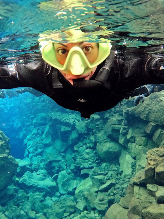 Η ίδια στάθηκε και στην εμπειρία κατάδυσης στη Silfra, ανάμεσα στις τεκτονικές πλάκες της Βόρειας Αμερικής και της Ευρασίας, χαρακτηρίζοντάς τη ως μία από τις πιο ξεχωριστές στιγμές της. Όπως σημείωσε, πρόκειται για τα πιο καθαρά νερά του πλανήτη, με θερμοκρασία μόλις δύο βαθμών, ενώ δεν έκρυψε τον ενθουσιασμό της για την αίσθηση του να πίνει νερό την ώρα που κολυμπά.