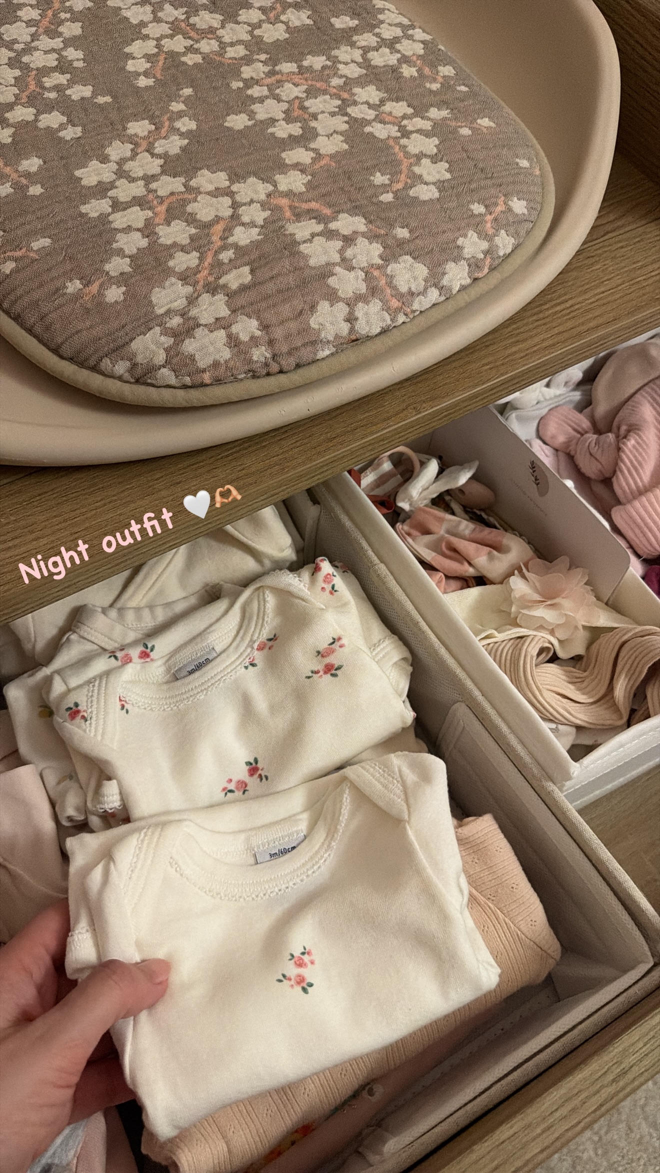 Μάλιστα, πριν μερικές ώρες μέσα από τον προσωπικό της λογαριασμό, δημοσίευσε μια φωτογραφία από το συρτάρι της κόρης της, αποκαλύπτοντας για πρώτη φορά τα ρουχαλάκια της νεογέννητης, η οποία έχει πάρει το όνομα Ξένια (Πολυξένη-Αλεξάνδρα).