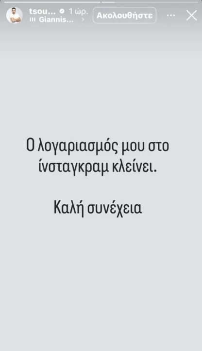 Ο Κώστας Τσουρός αποφάσισε να πει αντίο στο Instagram και μάλιστα με τρόπο που άφησε πολλούς με απορίες.