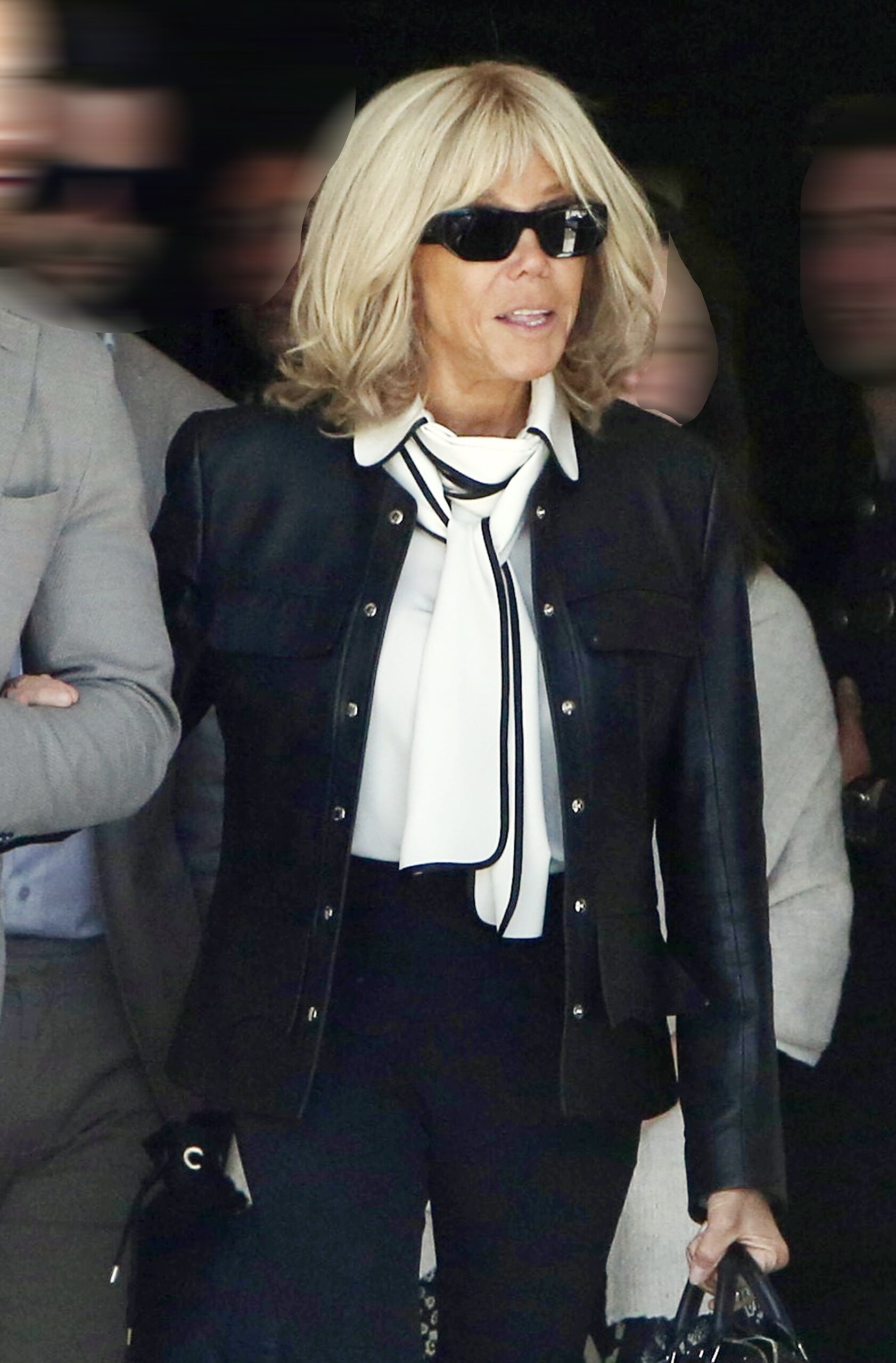 Η λεπτομέρεια που έκανε τη διαφορά ήταν η επιλογή των αξεσουάρ. Η Μπριζίτ Μακρόν κράτησε μια δομημένη μαύρη δερμάτινη τσάντα με μεταλλικές λεπτομέρειες -μην ρωτήσετε το brand- η οποία συμπλήρωνε ιδανικά το ύφος του σακακιού.