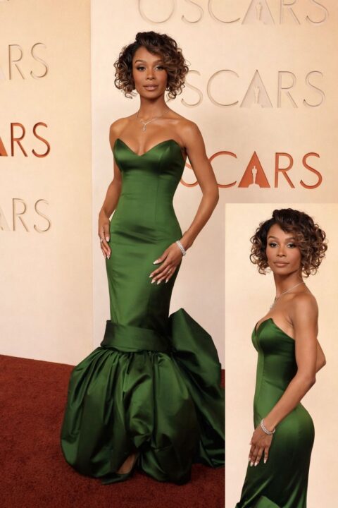 Η Zuri Hall με κομψή πράσινη τουαλέτα