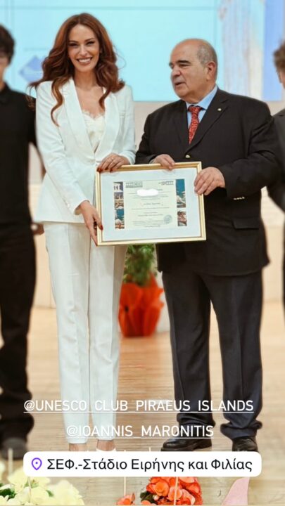 Μια τιμητική στιγμή έζησε η Σίσσυ Χρηστίδου το βράδυ της Παρασκευής 20/03, καθώς βραβεύθηκε από τον Όμιλο UNESCO Πειραιώς & Νήσων, στο πλαίσιο της 8ης Γιορτής της Γυναίκας, που πραγματοποιήθηκε στο Στάδιο Ειρήνης και Φιλίας.