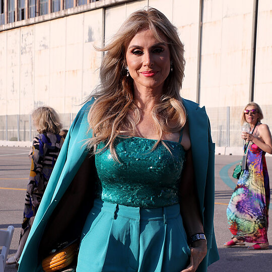 Σε ένα από τα στιγμιότυπα, στέκεται με το χέρι στη μέση, προβάλλοντας τη γυμνασμένη της σιλουέτα, με τον εξοπλισμό του γυμναστηρίου στο φόντο να θυμίζει πως το αποτέλεσμα αυτό είναι προϊόν σκληρής δουλειάς και πειθαρχίας.