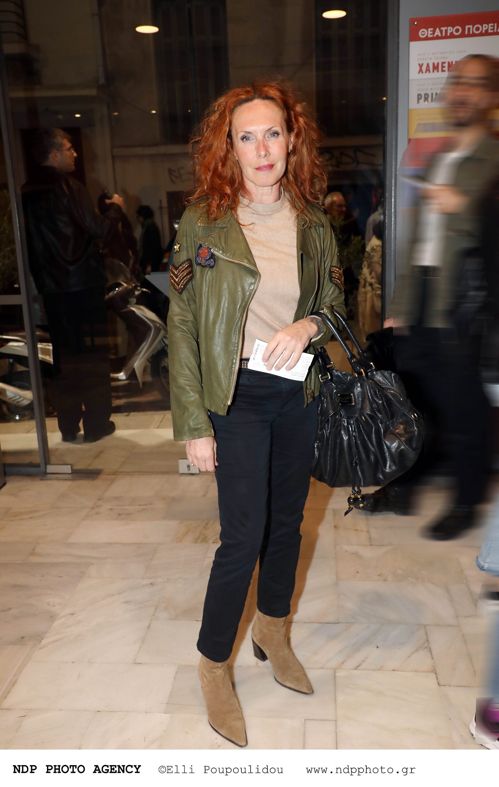 Το look ολοκληρώθηκε με ένα σικάτο suede μποτάκι, που πρόσθεσε υφή και μια πιο refined αισθητική στην εμφάνιση, διατηρώντας παράλληλα τη chic ισορροπία του outfit. Το συνολικό αποτέλεσμα ήταν polished, κομψό και ιδανικό για βραδινή θεατρική έξοδο.