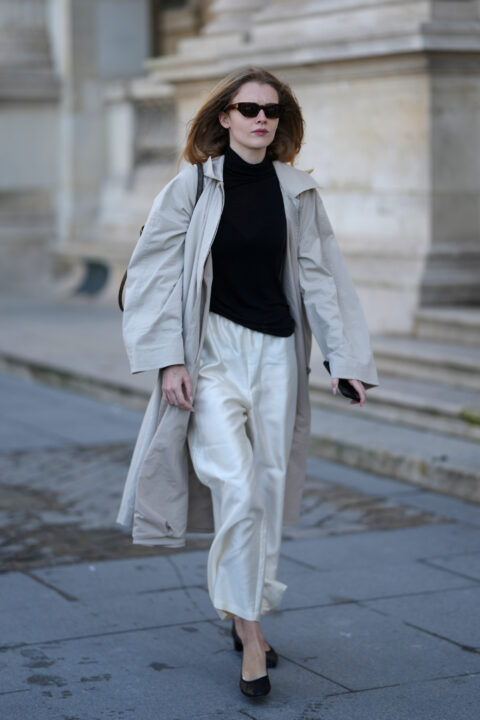 Σε αυτό ακριβώς το mood έρχεται να «κουμπώσει» το παντελόνι που έχουν ήδη υιοθετήσει οι πιο στιλάτες Παριζιάνες: το σατέν παντελόνι. Όταν δεν επιλέγουν το διαχρονικό τζιν ή μια φούστα, στρέφονται σε αυτό το ρευστό, φίνο κομμάτι που αποπνέει αβίαστη κομψότητα.
