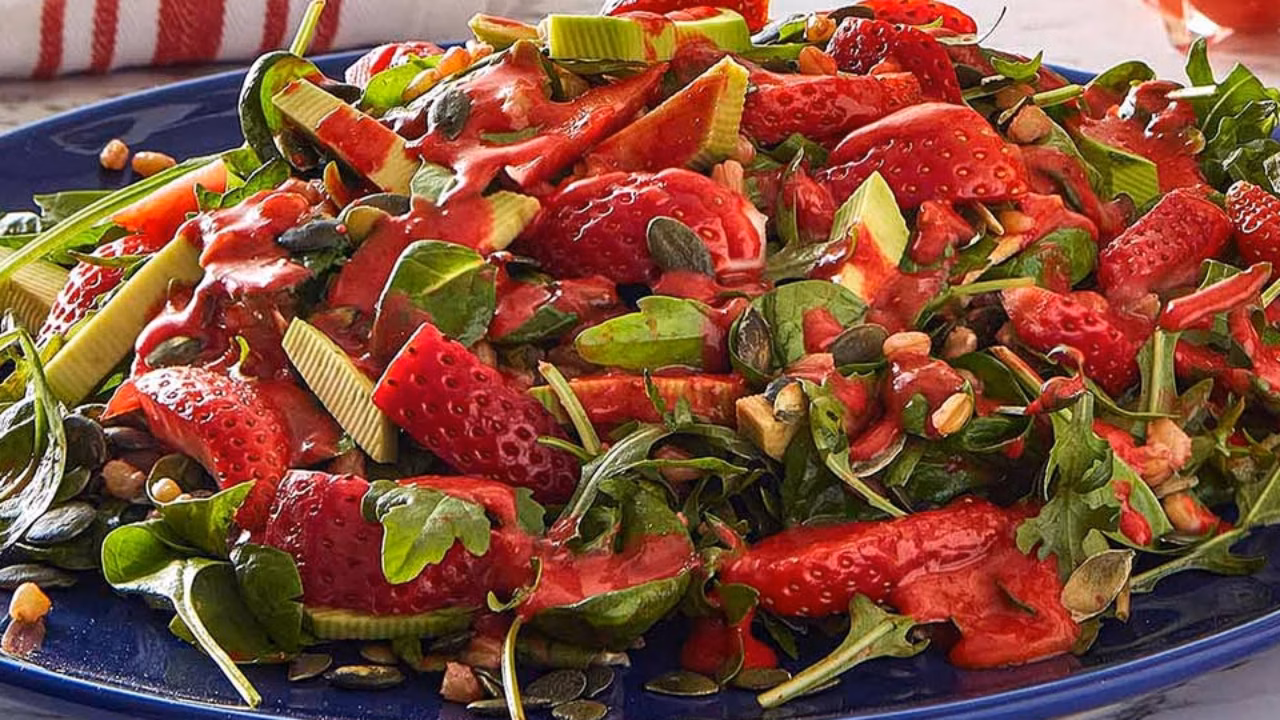 Αν ψάχνεις κάτι δροσερό, ελαφρύ και ταυτόχρονα νόστιμο, αυτή η σαλάτα από την Αργυρώ Μπαρμπαρίγου είναι ακριβώς αυτό που χρειάζεσαι. Με φρέσκες φράουλες που δίνουν μια φυσική γλυκύτητα και μια αρωματική σως φράουλας που δένει υπέροχα όλα τα υλικά, το αποτέλεσμα είναι απλό αλλά ξεχωριστό. Τα super foods προσθέτουν μια μικρή boost θρεπτικής αξίας χωρίς να βαραίνουν το πιάτο, ενώ οι υφές και τα χρώματα κάνουν τη σαλάτα ακόμα πιο απολαυστική. Είναι από εκείνες τις συνταγές που φτιάχνονται εύκολα και τρώγονται ακόμα πιο εύκολα. Ιδανική για ένα ελαφρύ γεύμα μέσα στη μέρα ή ως συνοδευτικό στο τραπέζι, αυτή η σαλάτα αποδεικνύει πως το υγιεινό μπορεί να είναι απλό, δροσερό και πραγματικά νόστιμο.