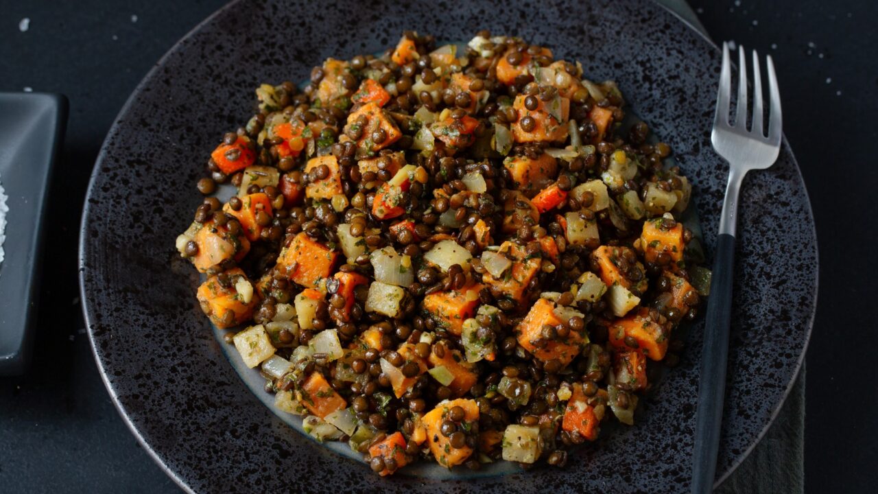 Οι φακές με ψητά λαχανικά, μία ιδιαίτερη συνταγή του Δημήτρη Σκαρμούτσου, είναι ένα θρεπτικό και γευστικό πιάτο που συνδυάζει την απλότητα των οσπρίων με τη βαθιά γεύση των λαχανικών που ψήνονται στον φούρνο. Ένα γεύμα γεμάτο αρώματα, ιδανικό για καθημερινό τραπέζι αλλά και για όσους αναζητούν υγιεινές και χορταστικές επιλογές.