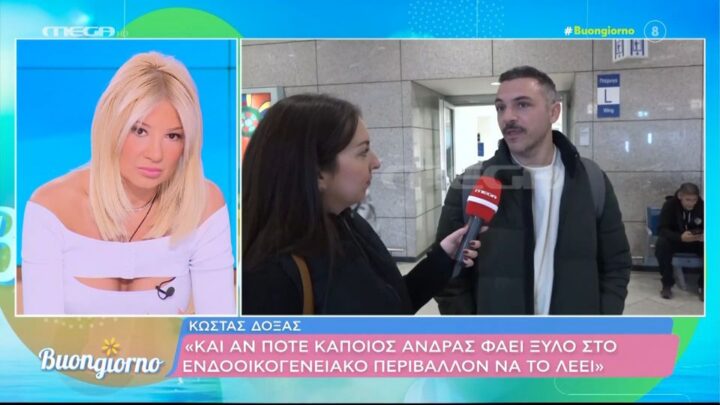 Στο αεροδρόμιο, κατά την επιστροφή του από τη Θεσσαλονίκη, συνάντησε η κάμερα της εκπομπής «Buongiorno» τον Κώστα Δόξα, λίγες ώρες μετά τις εξελίξεις που αφορούν τόσο τη δικαστική του υπόθεση όσο και τη συμμετοχή του στο J2US.