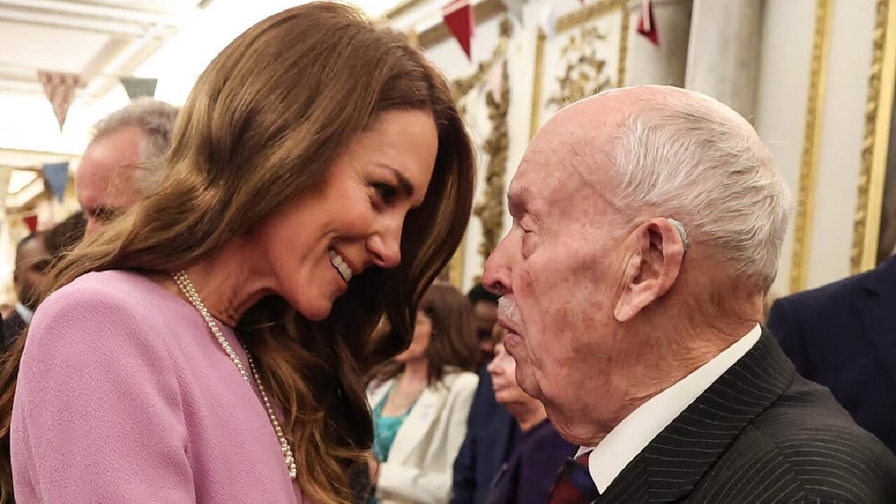 Η πριγκίπισσα της Ουαλίας, φορώντας ένα κομψό ροζ φόρεμα σε γραμμή Α της αγαπημένης της σχεδιάστριας Emilia Wickstead, είχε μια ιδιαίτερα ανθρώπινη και συγκινητική αλληλεπίδραση με τον 88χρονο Τόνι Γκλέντχιλ.